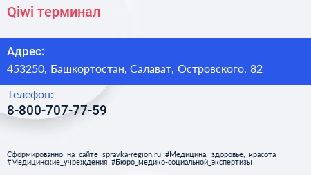 Qiwi, терминал по адресу 453250, Башкортостан, Салават, Островского, 82 в дальнейшем Организация, размещена в следующих категориях: