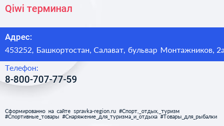 Qiwi, терминал по адресу 453252, Башкортостан, Салават, бульвар Монтажников, 2а в дальнейшем Организация, размещена в следующих категориях: