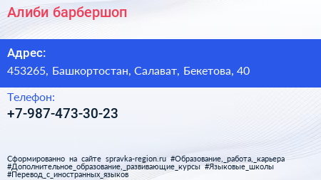Алиби, барбершоп по адресу 453265, Башкортостан, Салават, Бекетова, 40 в дальнейшем Организация, размещена в следующих категориях:
