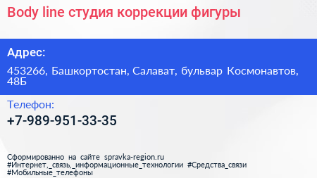 Body line, студия коррекции фигуры по адресу 453266, Башкортостан, Салават, бульвар Космонавтов, 48Б в дальнейшем Организация, размещена в следующих категориях: