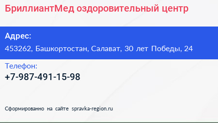 БриллиантМед, оздоровительный центр по адресу 453262, Башкортостан, Салават, 30 лет Победы, 24 в дальнейшем Организация, размещена в следующих категориях: