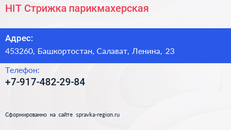 HIT Стрижка, парикмахерская по адресу 453260, Башкортостан, Салават, Ленина, 23 в дальнейшем Организация, размещена в следующих категориях: