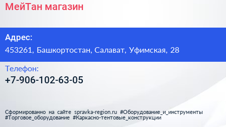 МейТан, магазин по адресу 453261, Башкортостан, Салават, Уфимская, 28 в дальнейшем Организация, размещена в следующих категориях: