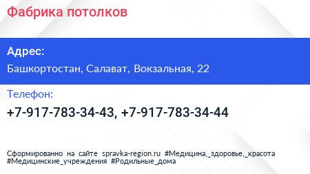 Фабрика потолков по адресу Башкортостан, Салават, Вокзальная, 22 в дальнейшем Организация, размещена в следующих категориях: