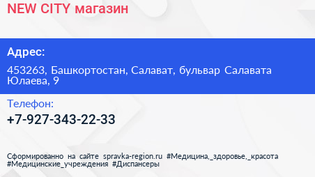 NEW CITY, магазин по адресу 453263, Башкортостан, Салават, бульвар Салавата Юлаева, 9 в дальнейшем Организация, размещена в следующих категориях: