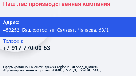 Наш лес, производственная компания по адресу 453252, Башкортостан, Салават, Чапаева, 63/1 в дальнейшем Организация, размещена в следующих категориях: