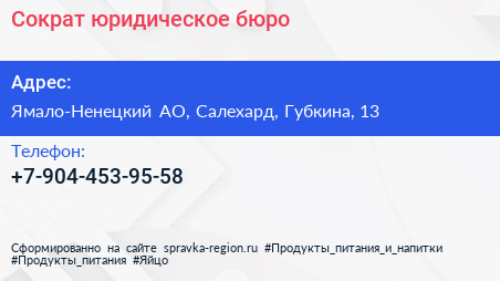 Сократ, юридическое бюро по адресу Ямало-Ненецкий АО, Салехард, Губкина, 13 в дальнейшем Организация, размещена в следующих категориях: