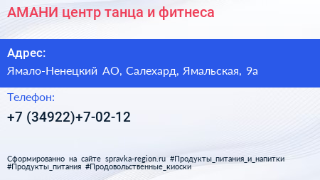 АМАНИ, центр танца и фитнеса по адресу Ямало-Ненецкий АО, Салехард, Ямальская, 9а в дальнейшем Организация, размещена в следующих категориях: