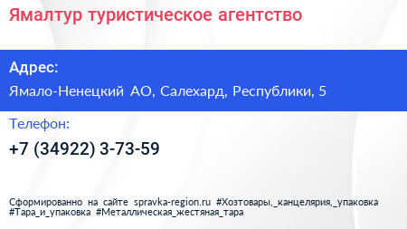 Ямалтур, туристическое агентство по адресу Ямало-Ненецкий АО, Салехард, Республики, 5 в дальнейшем Организация, размещена в следующих категориях: