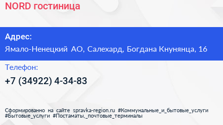 NORD, гостиница по адресу Ямало-Ненецкий АО, Салехард, Богдана Кнунянца, 16 в дальнейшем Организация, размещена в следующих категориях: