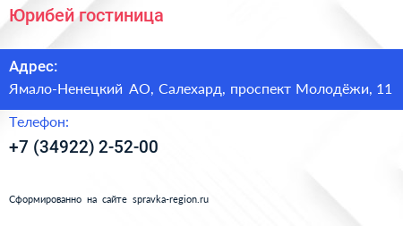 Юрибей, гостиница по адресу Ямало-Ненецкий АО, Салехард, проспект Молодёжи, 11 в дальнейшем Организация, размещена в следующих категориях: