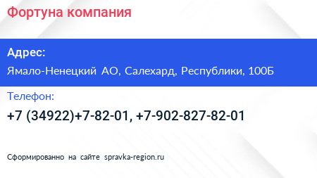 Фортуна, компания по адресу Ямало-Ненецкий АО, Салехард, Республики, 100Б в дальнейшем Организация, размещена в следующих категориях: