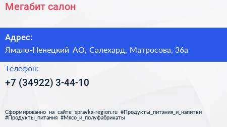 Мегабит, салон по адресу Ямало-Ненецкий АО, Салехард, Матросова, 36а в дальнейшем Организация, размещена в следующих категориях:
