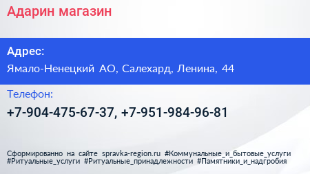 Адарин, магазин по адресу Ямало-Ненецкий АО, Салехард, Ленина, 44 в дальнейшем Организация, размещена в следующих категориях: