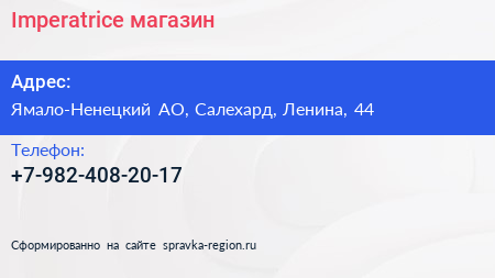 Imperatrice, магазин по адресу Ямало-Ненецкий АО, Салехард, Ленина, 44 в дальнейшем Организация, размещена в следующих категориях: