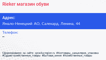 Rieker, магазин обуви по адресу Ямало-Ненецкий АО, Салехард, Ленина, 44 в дальнейшем Организация, размещена в следующих категориях:
