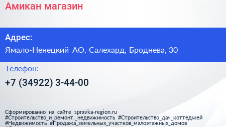 Амикан, магазин по адресу Ямало-Ненецкий АО, Салехард, Броднева, 30 в дальнейшем Организация, размещена в следующих категориях:
