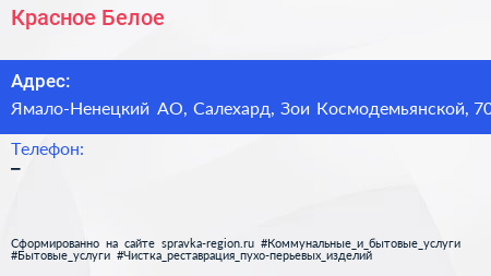Красное & Белое по адресу Ямало-Ненецкий АО, Салехард, Зои Космодемьянской, 70 в дальнейшем Организация, размещена в следующих категориях: