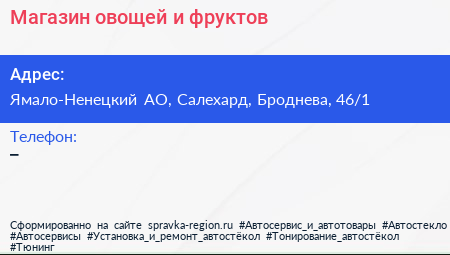 Магазин овощей и фруктов по адресу Ямало-Ненецкий АО, Салехард, Броднева, 46/1 в дальнейшем Организация, размещена в следующих категориях: