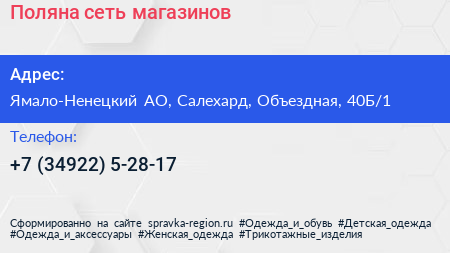 Поляна, сеть магазинов по адресу Ямало-Ненецкий АО, Салехард, Объездная, 40Б/1 в дальнейшем Организация, размещена в следующих категориях: