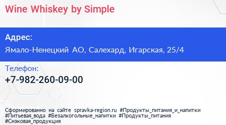 Wine & Whiskey by Simple по адресу Ямало-Ненецкий АО, Салехард, Игарская, 25/4 в дальнейшем Организация, размещена в следующих категориях: