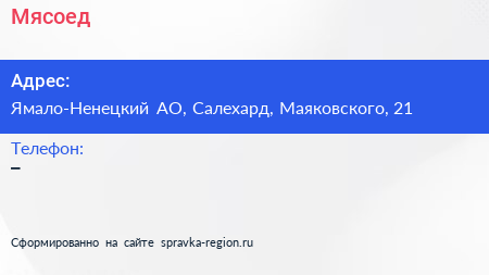 Мясоед по адресу Ямало-Ненецкий АО, Салехард, Маяковского, 21 в дальнейшем Организация, размещена в следующих категориях: