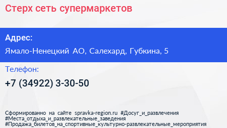 Стерх, сеть супермаркетов по адресу Ямало-Ненецкий АО, Салехард, Губкина, 5 в дальнейшем Организация, размещена в следующих категориях: