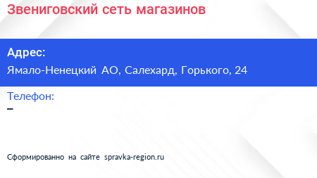 Звениговский, сеть магазинов по адресу Ямало-Ненецкий АО, Салехард, Горького, 24 в дальнейшем Организация, размещена в следующих категориях: