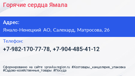 Горячие сердца Ямала по адресу Ямало-Ненецкий АО, Салехард, Матросова, 26 в дальнейшем Организация, размещена в следующих категориях: