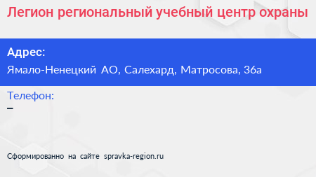 Легион, региональный учебный центр охраны по адресу Ямало-Ненецкий АО, Салехард, Матросова, 36а в дальнейшем Организация, размещена в следующих категориях: