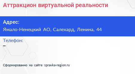 Аттракцион виртуальной реальности по адресу Ямало-Ненецкий АО, Салехард, Ленина, 44 в дальнейшем Организация, размещена в следующих категориях: