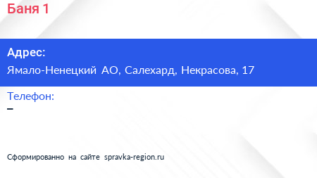 Баня №1 по адресу Ямало-Ненецкий АО, Салехард, Некрасова, 17 в дальнейшем Организация, размещена в следующих категориях:
