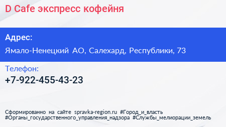 D Cafe, экспресс-кофейня по адресу Ямало-Ненецкий АО, Салехард, Республики, 73 в дальнейшем Организация, размещена в следующих категориях: