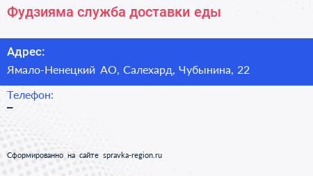 Фудзияма, служба доставки еды по адресу Ямало-Ненецкий АО, Салехард, Чубынина, 22 в дальнейшем Организация, размещена в следующих категориях: