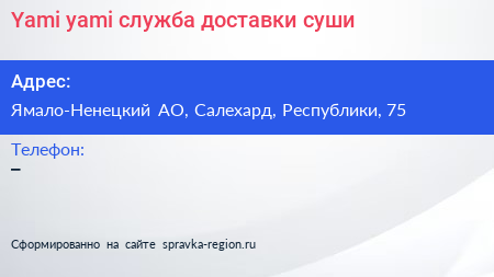Yami yami, служба доставки суши по адресу Ямало-Ненецкий АО, Салехард, Республики, 75 в дальнейшем Организация, размещена в следующих категориях: