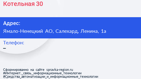 Котельная №30 по адресу Ямало-Ненецкий АО, Салехард, Ленина, 1а в дальнейшем Организация, размещена в следующих категориях: