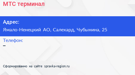 МТС, терминал по адресу Ямало-Ненецкий АО, Салехард, Чубынина, 25 в дальнейшем Организация, размещена в следующих категориях: