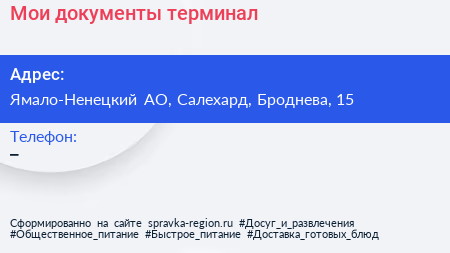 Мои документы, терминал по адресу Ямало-Ненецкий АО, Салехард, Броднева, 15 в дальнейшем Организация, размещена в следующих категориях: