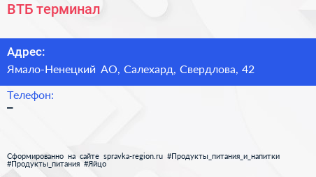 ВТБ, терминал по адресу Ямало-Ненецкий АО, Салехард, Свердлова, 42 в дальнейшем Организация, размещена в следующих категориях: