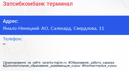 Запсибкомбанк, терминал по адресу Ямало-Ненецкий АО, Салехард, Свердлова, 11 в дальнейшем Организация, размещена в следующих категориях: