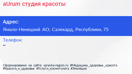 aUrum, студия красоты по адресу Ямало-Ненецкий АО, Салехард, Республики, 75 в дальнейшем Организация, размещена в следующих категориях: