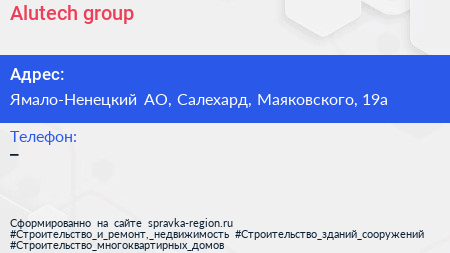 Alutech group по адресу Ямало-Ненецкий АО, Салехард, Маяковского, 19а в дальнейшем Организация, размещена в следующих категориях: