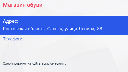 Магазин обуви по адресу Ростовская область, Сальск, улица Ленина, 38 в дальнейшем Организация, размещена в следующих категориях: