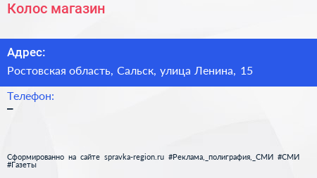 Колос, магазин по адресу Ростовская область, Сальск, улица Ленина, 15 в дальнейшем Организация, размещена в следующих категориях: