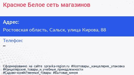 Красное & Белое, сеть магазинов по адресу Ростовская область, Сальск, улица Кирова, 88 в дальнейшем Организация, размещена в следующих категориях:
