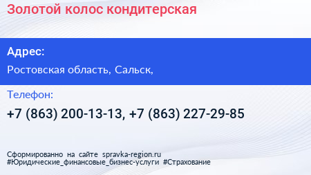 Золотой колос, кондитерская по адресу Ростовская область, Сальск, в дальнейшем Организация, размещена в следующих категориях: