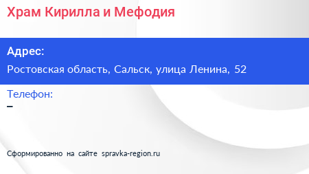 Храм Кирилла и Мефодия по адресу Ростовская область, Сальск, улица Ленина, 52 в дальнейшем Организация, размещена в следующих категориях: