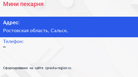 Мини-пекарня по адресу Ростовская область, Сальск, в дальнейшем Организация, размещена в следующих категориях: