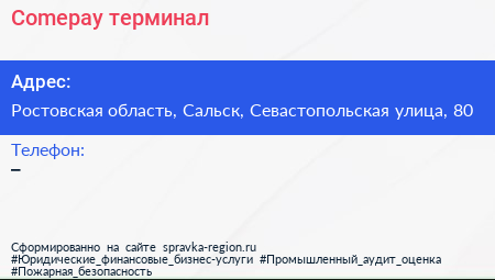 Comepay, терминал по адресу Ростовская область, Сальск, Севастопольская улица, 80 в дальнейшем Организация, размещена в следующих категориях: