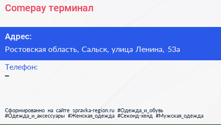 Адрес: Ростовская область, Сальск, улица Ленина, 53а